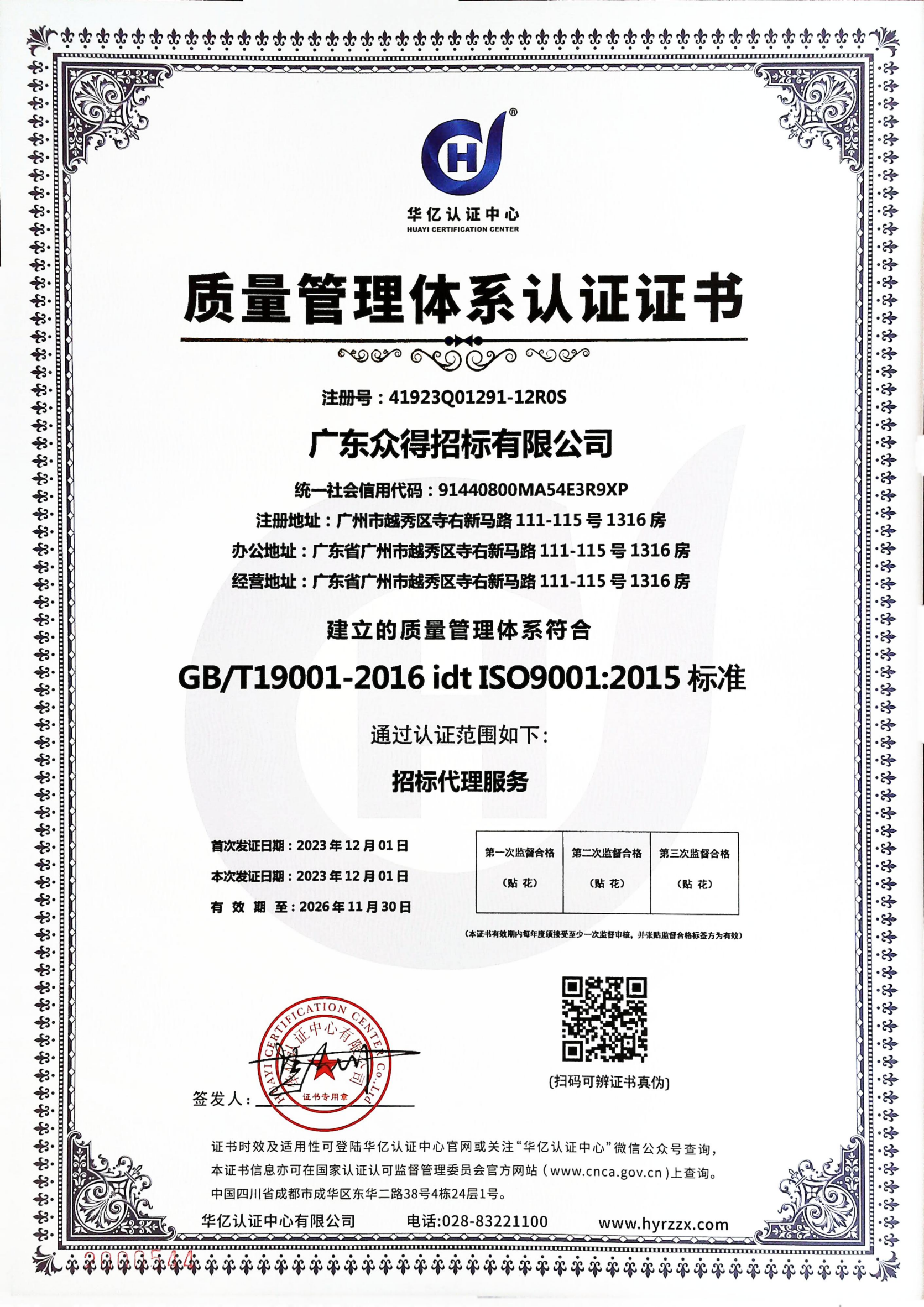 廣東眾得招標有限公司,經國家有關部門批準成立,注冊資本1000萬元,公司主要提供全過程工程咨詢服務(投資咨詢、工程設計、勘察、工程監理、招標代理、工程造價、項目管理等)以及政府采購業務。